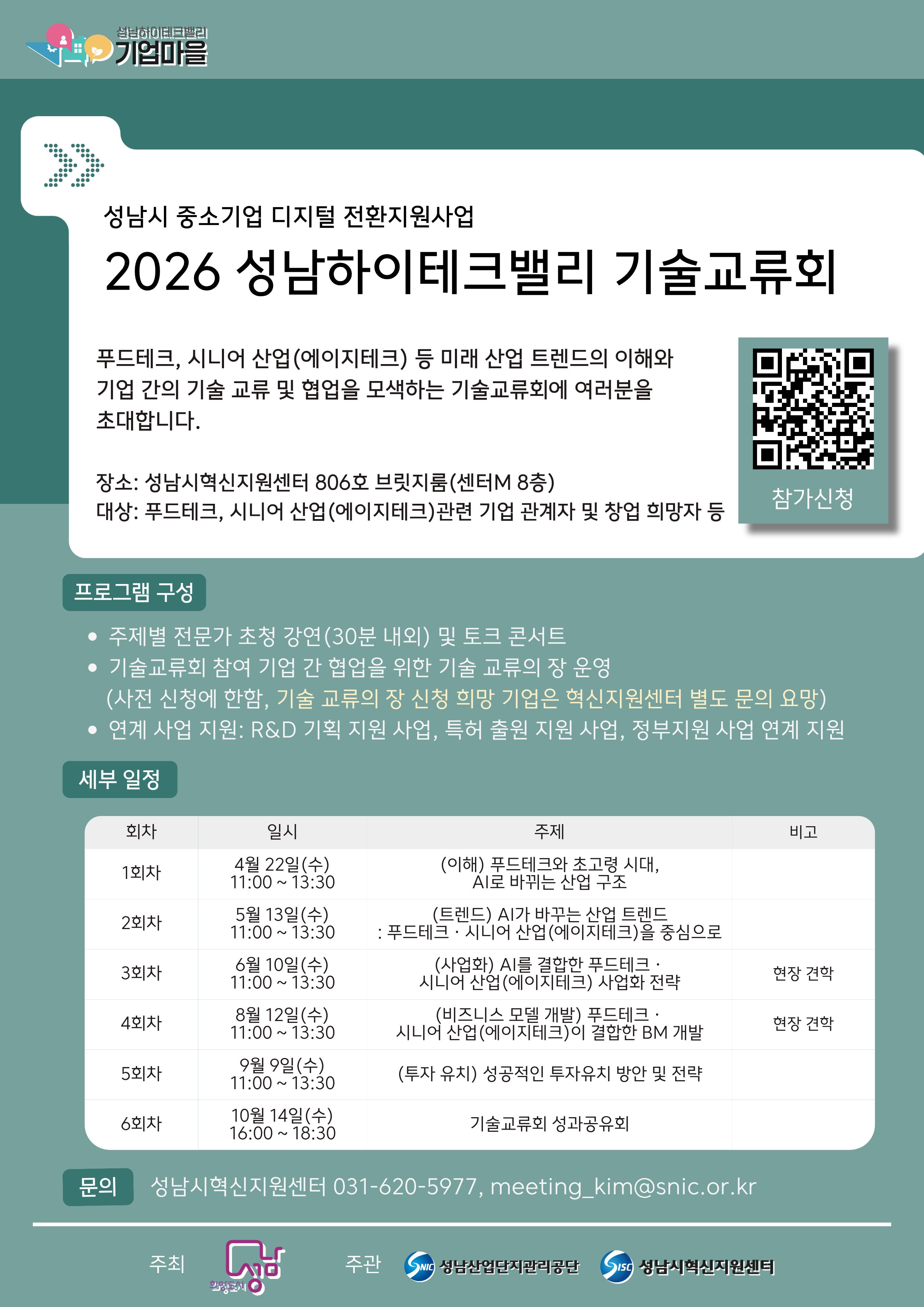 2026 성남하이테크밸리 기술교류회 참가자 모집