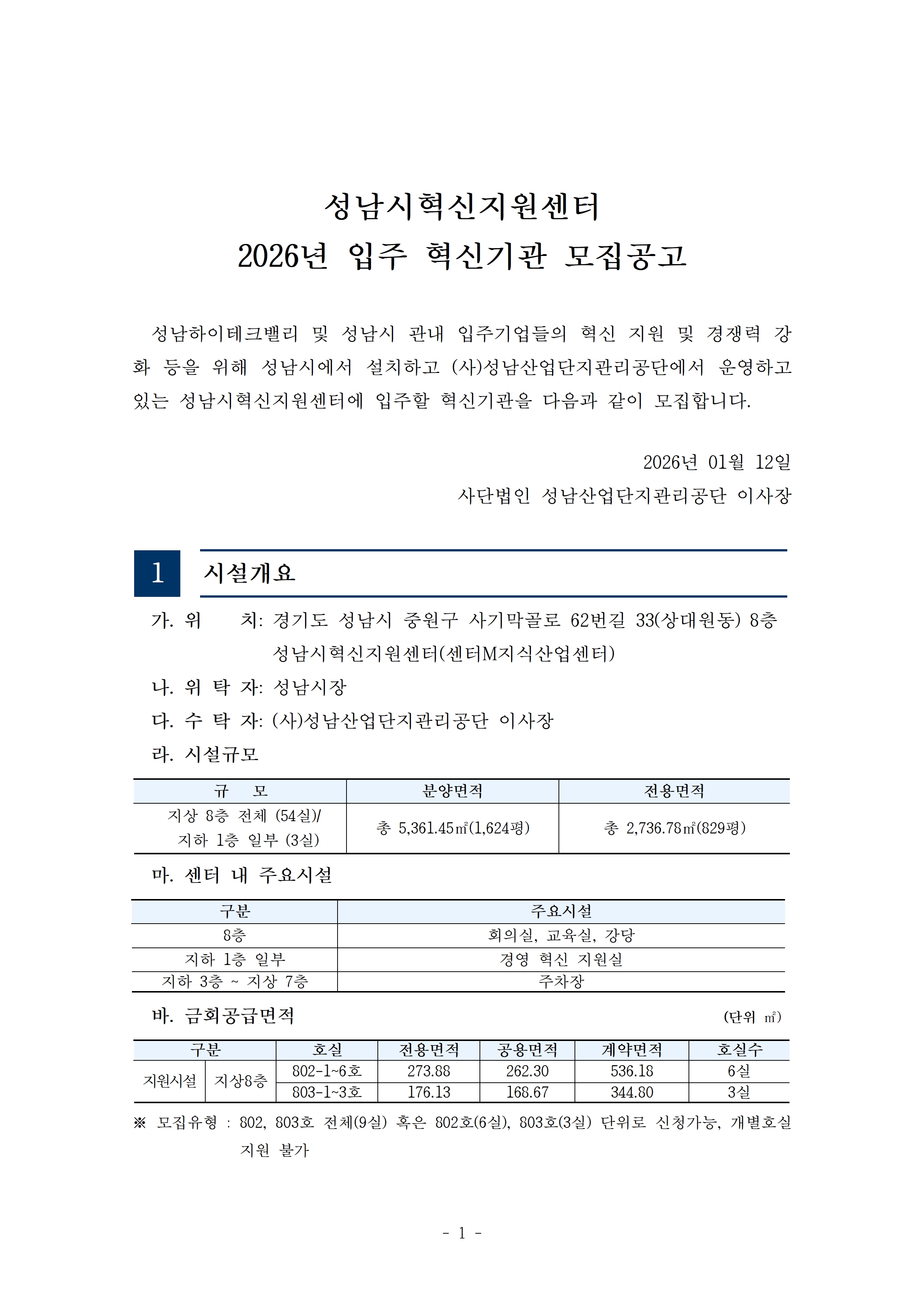 성남시혁신지원센터 2026년 입주 혁신기관 모집 공고.hwp 붙임_성남시혁신지원센터 입주 신청서, 입주 계획서, 개인정보 수집 및 이용동의서.hwp